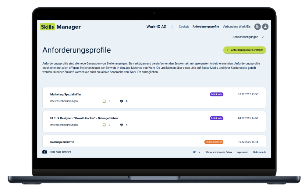 • Schneller entscheiden – Erkenne auf einen Blick, ob eine Work-ID alle wichtigen Skills mitbringt.